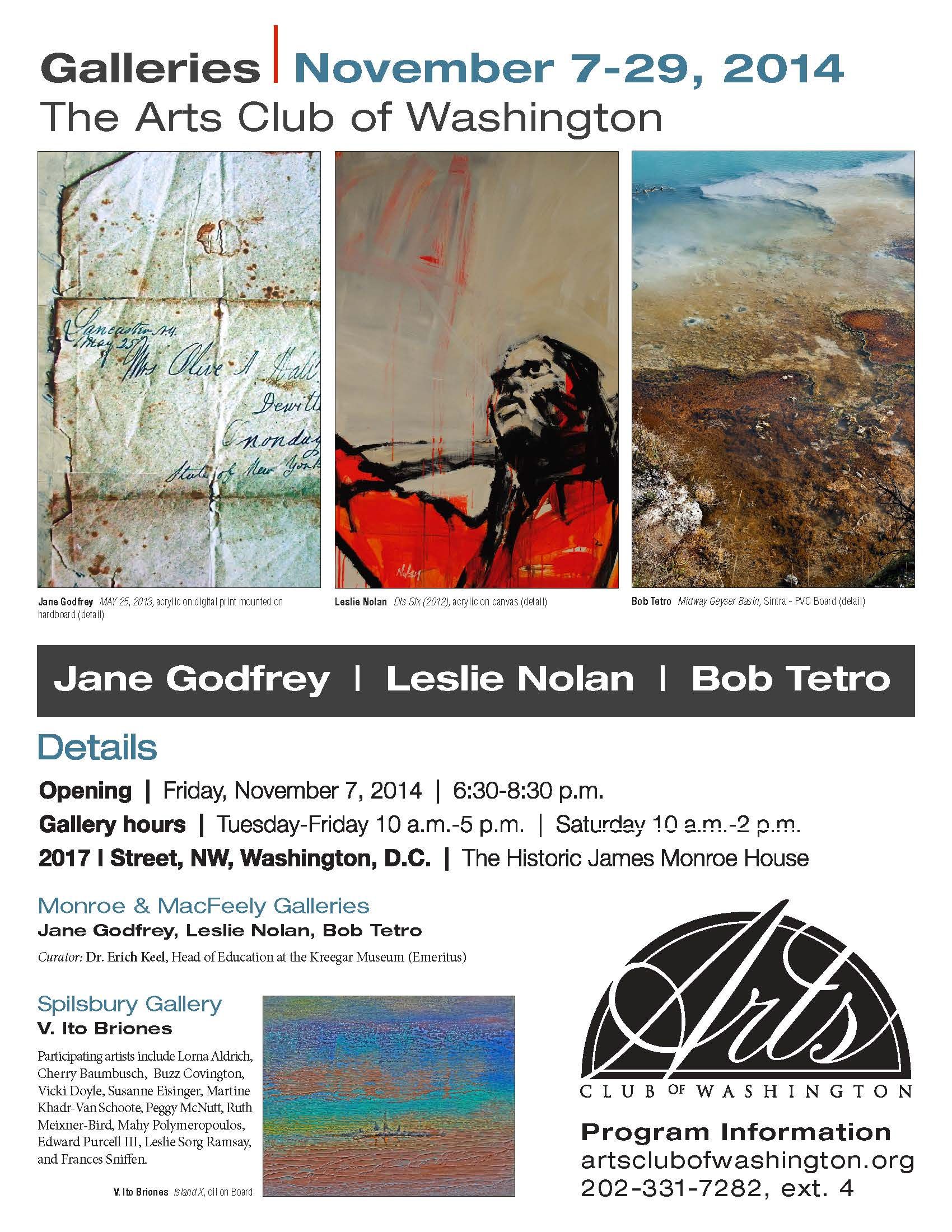 This weekend I’m installing an exhibit at the venerable Arts Club of Washington. Curated by Erich Keel, Head of Education at the Kreeger Museum (Emeritus), the show includes fellow artists Jane Godfrey and Bob Tetro. This should be a big show. Gallery Director Nichola Hays advised me to bring 20 artworks – that’s a lot of artwork, particularly since many pieces are 48″ x 60″.
