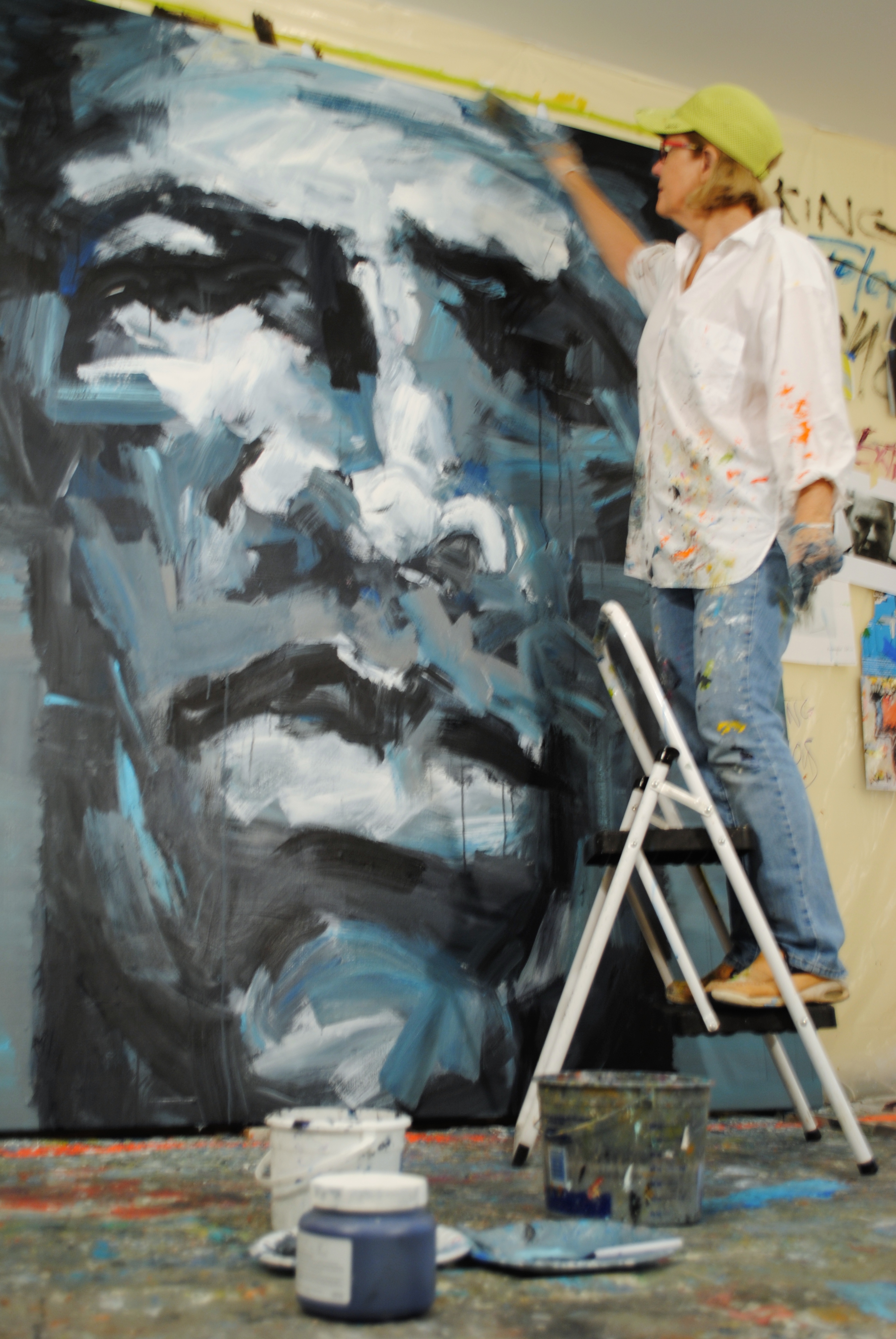 Getting a workout painting this 72″ x 84″ canvas. Up and down on the step ladder, mixing large batches of paint, and wielding wide brushes — all part of a vigorous day. When finished, this piece will form a key visual element in my upcoming solo at Delaplaine Visual Arts Education Center, Frederick, MD. The main gallery space is huge, with high ceilings to easily accommodate this big boy.