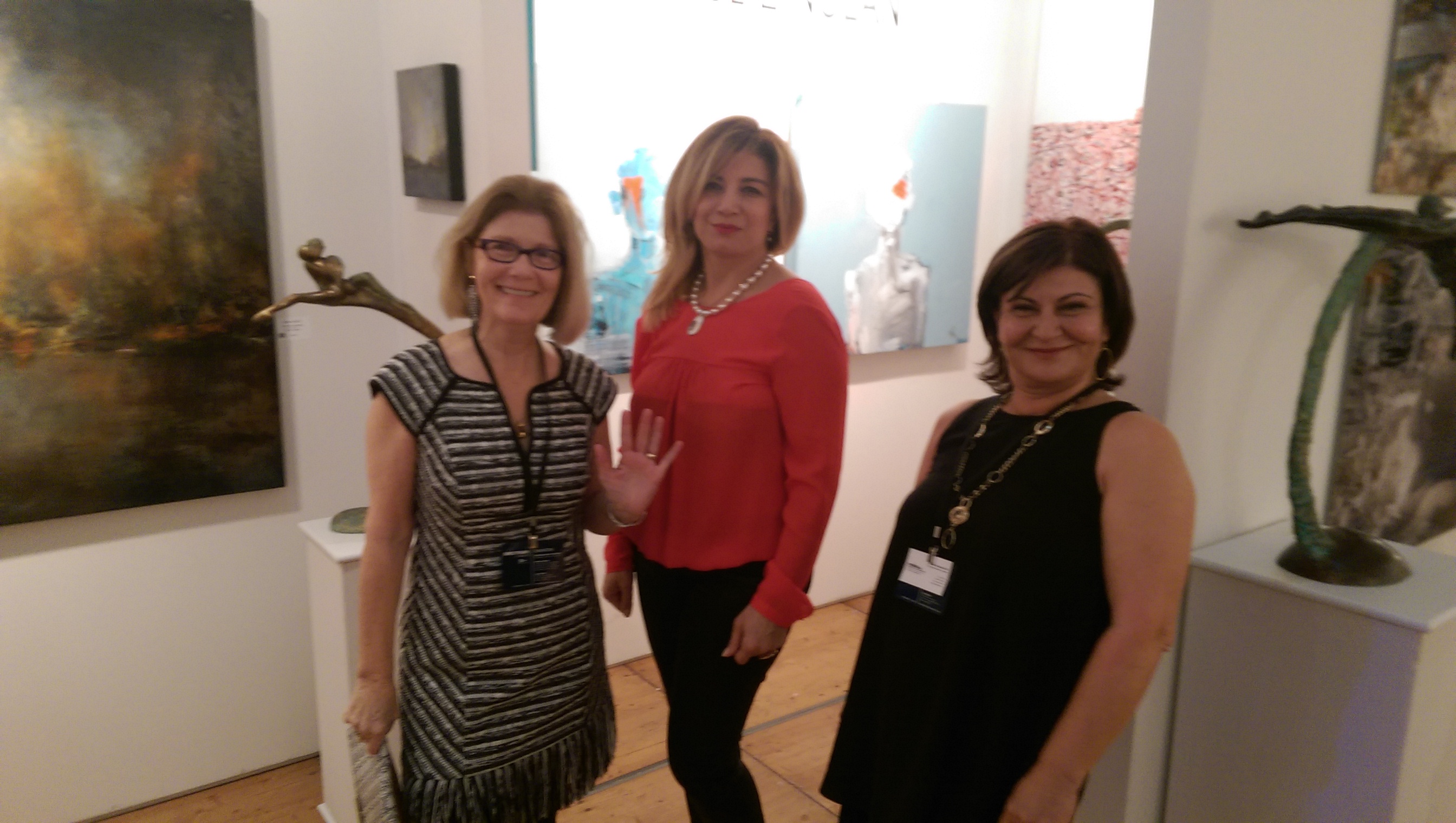 IMAG0498 Published December 8, 2015 at 2688 × 1520 in Art Miami Week-Gallery NK Artists Leslie Nolan and Gulten Imamoglu with Gallery NK owner/artist Nihal Kececi