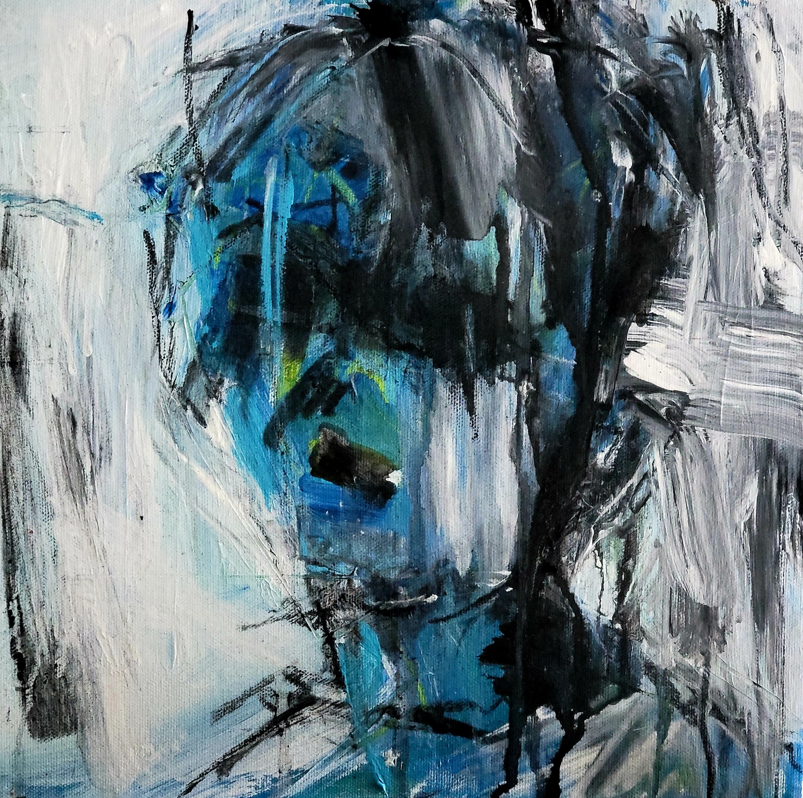 Am selecting pieces from the studio for my upcoming solo exhibit at d’Art Center, Norfolk, Virginia July 1 – 25, 2021. This painting, “A Pulse Beyond 13,” 12×12 inches, may make the cut. I particularly like the way the black color dances around the square and strengthens the figure, making a powerful and compelling statement against the lush background. It epitomizes the rich relationship between ourselves and our surroundings, often at odds, yet inevitably part of one another.