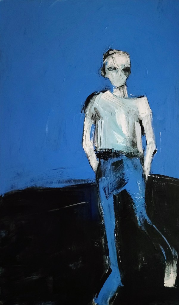 I’ve been having so much fun this summer in the studio painting with blues. So many shades and hues, muted and bold, thick and thin, rich and dull. Blues always have a huge impact on one’s psychology. Even unexpected. They can uplift and caress. Blue jeans, the sky, a lake, icing on a cake. Why not celebrate freedom, sensitivity and imagination with blue?