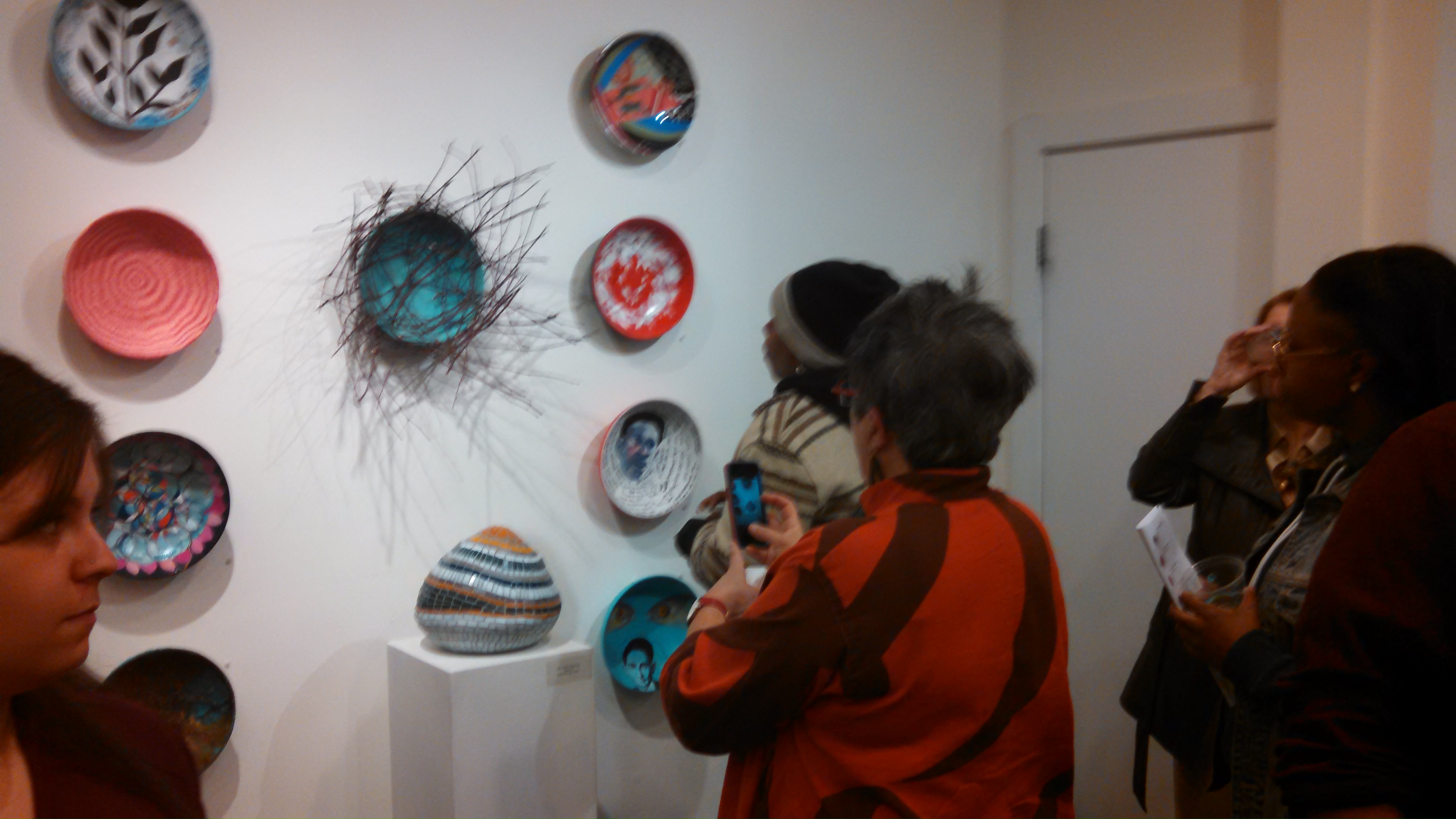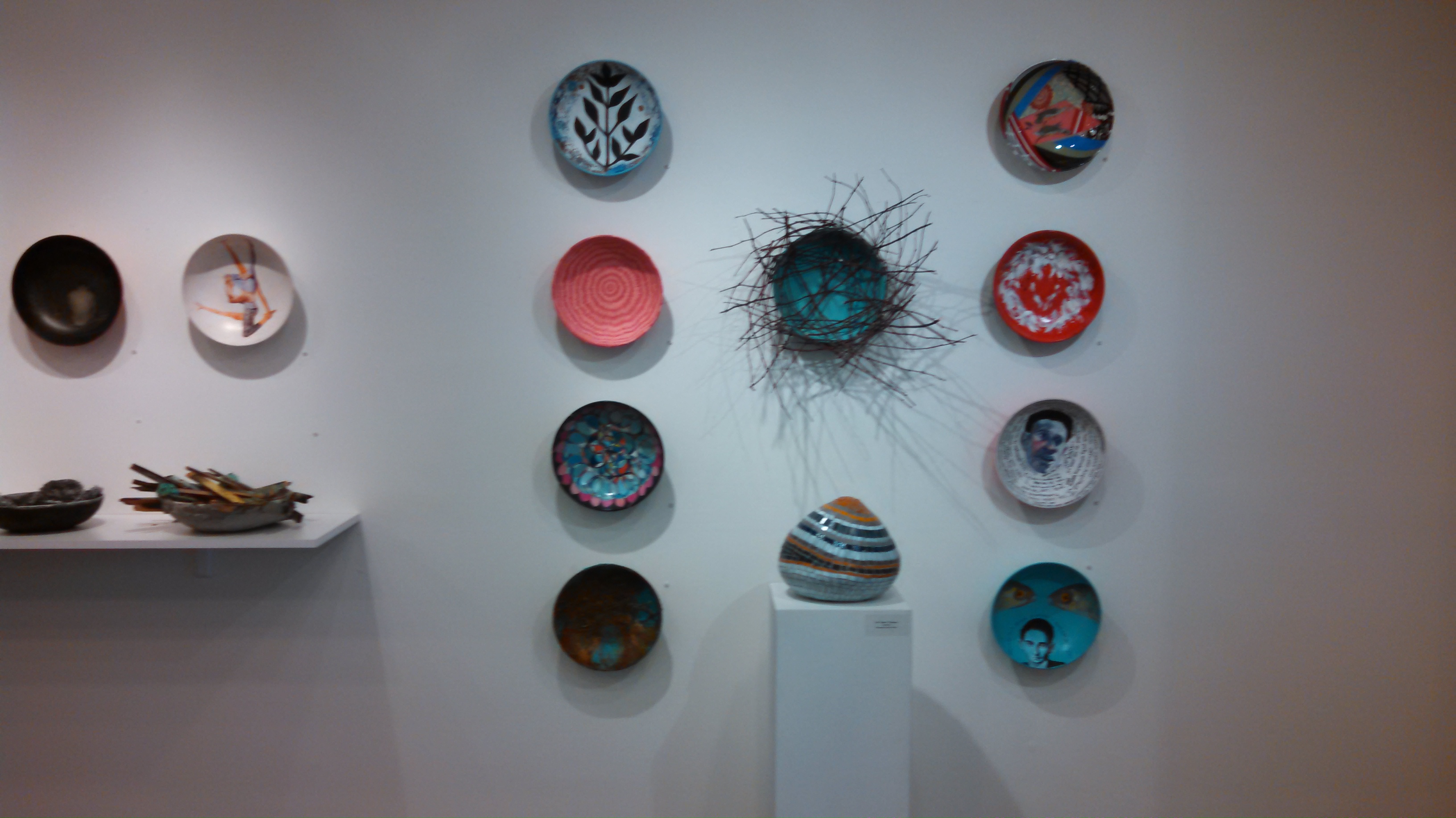 Honored to have been invited to participate in this super curated exhibit. Transformation of the raw bowl into a healing vessel had its roots in the loss of my lovely mother several months ago. That event sparked a new group of figurative paintings featuring strong, confident women with ever bigger and more extravagant hair, wig or headgear. Each painting became more outrageous, symbolizing fearlessness, freedom to go out of bounds, and permission to be exceptional. For the bowl, I used its curvature to take the idea even further, with the headpiece so large it circles the vessel, enfolding the figure in a protective embrace.